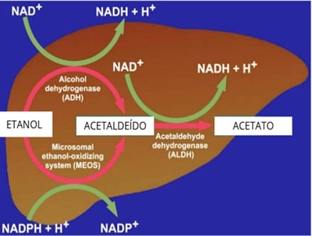 Imagem adaptada de Teschke, Rolf. (2018). Alcoholic Liver Disease: Alcohol Metabolism, Cascade of Molecular Mechanisms, Cellular Targets, and Clinical Aspects. Biomedicines. 6. 106. 10.3390/biomedicines6040106.