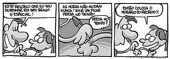 2. No primeiro quadrinho da tirinha, na oração: “Este relógio que eu vou desenhar em seu braço”, tem-se uma oração adjetiva restritiva ou explicativa? Explique.