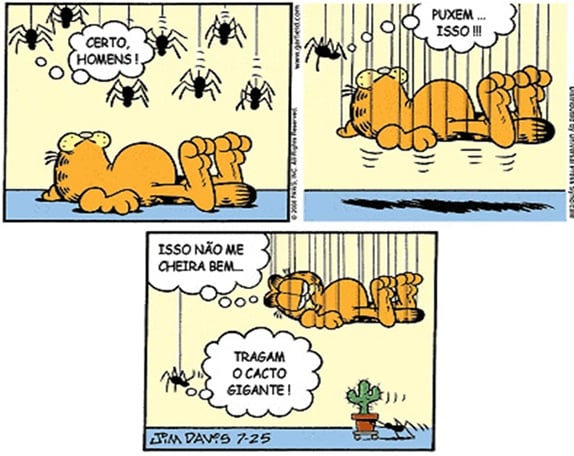 6. O ponto de exclamação, no último balão da tirinha: “Tragam o cacto gigante!” foi empregado para indicar