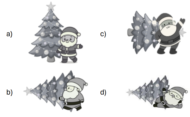 6. Papai Noel passou por quatro casas e, em cada uma delas, fez uma foto junto da árvore.